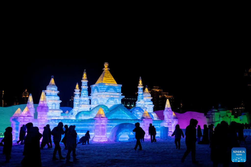 People visit an ice and snow theme park in Manzhouli, north China's Inner Mongolia Autonomous Region, Dec. 20, 2025. The 22nd China-Russia-Mongolia international ice and snow festival opened here on Saturday.