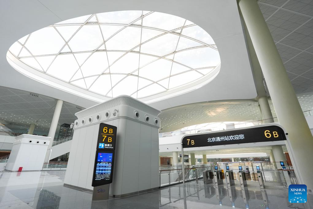 This photo taken on Dec. 25, 2025 shows ticket gates at the Beijing Tongzhou Railway Station in Beijing, capital of China. The railway station, located in the comprehensive transportation hub of Beijing's sub-center Tongzhou District, will be officially put into operation on Dec. 30. (Xinhua/Ju Huanzong)