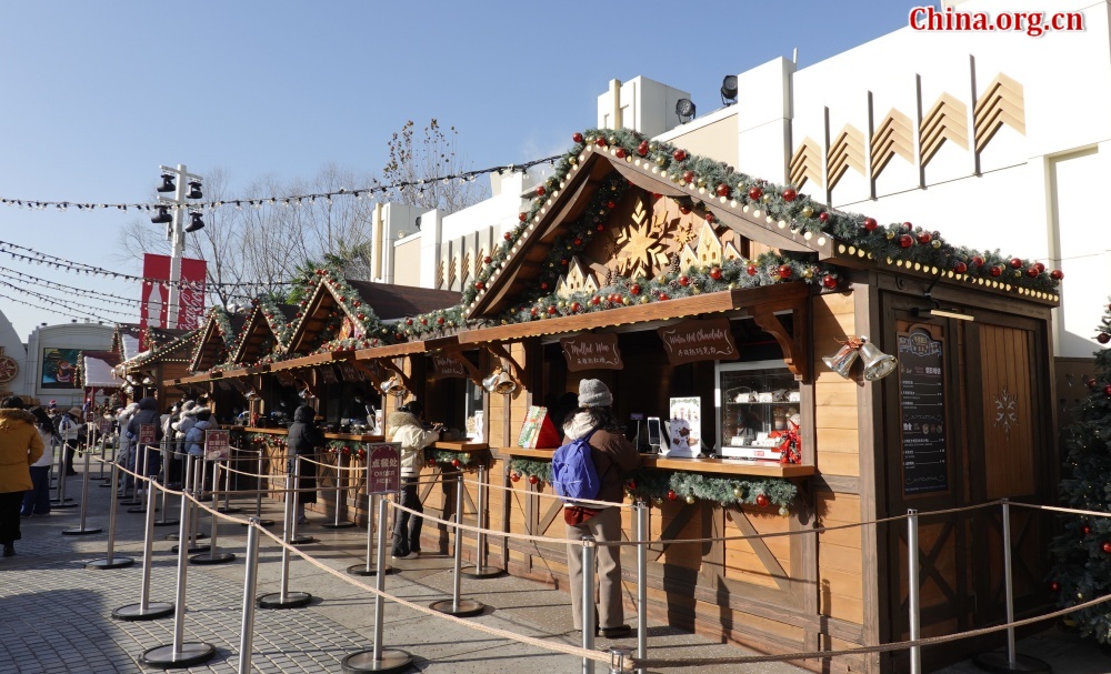 A holiday market provides festive snacks at Universal Beijing Resort, Dec. 24, 2025. [Photo by Yan Xiaoqing/China.org.cn]