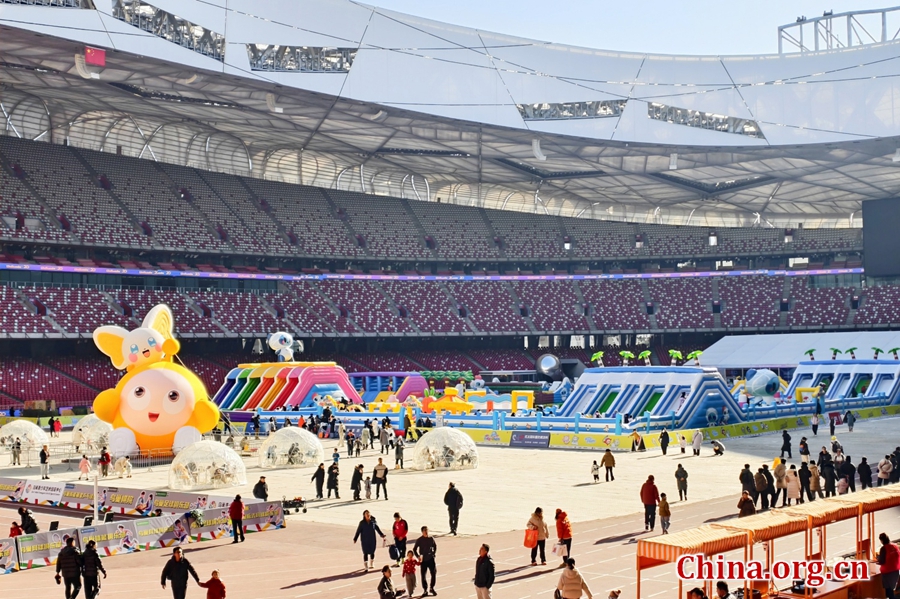 An overview of the National Stadium at the 15th Bird's Nest Happy Ice and Snow Season in Beijing, Dec. 27, 2025. [Photo by Gong Yingchun/China.org.cn]