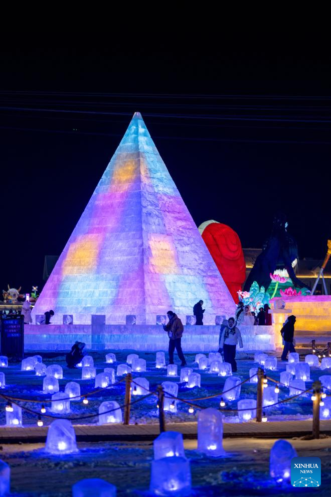 This photo taken on Dec. 31, 2025 shows people attending an ice and snow festival in Hohhot, north China's Inner Mongolia Autonomous Region. Hohhot has launched more than 300 winter amusement programs since December 2025, incorporating ice and snow sports, cultural experiences and vogue consumption to boost the local economy. (Xinhua/Lian Zhen)