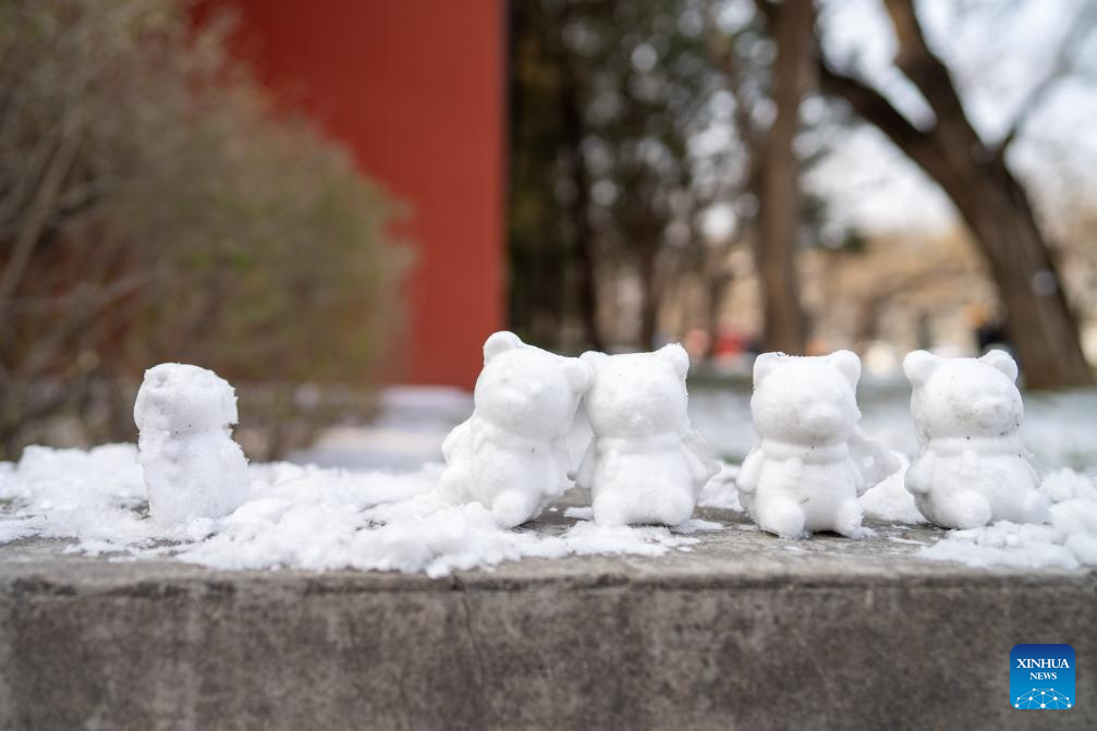 This photo shows mini snowmen by a street in Beijing, capital of China, Jan. 18, 2026. Beijing witnessed a snowfall this weekend. (Xinhua/Xie Han)