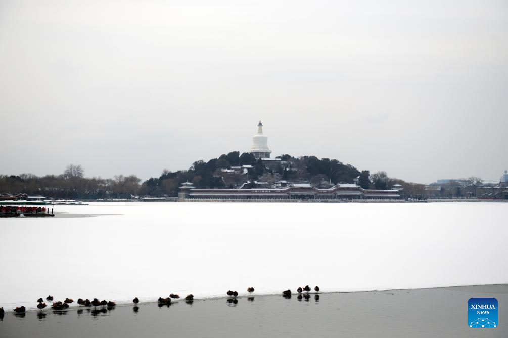 This photo shows the scenery of the Beihai Park after a snowfall in Beijing, capital of China, Jan. 18, 2026. Beijing witnessed a snowfall this weekend. (Photo by Wang Yuewu/Xinhua)