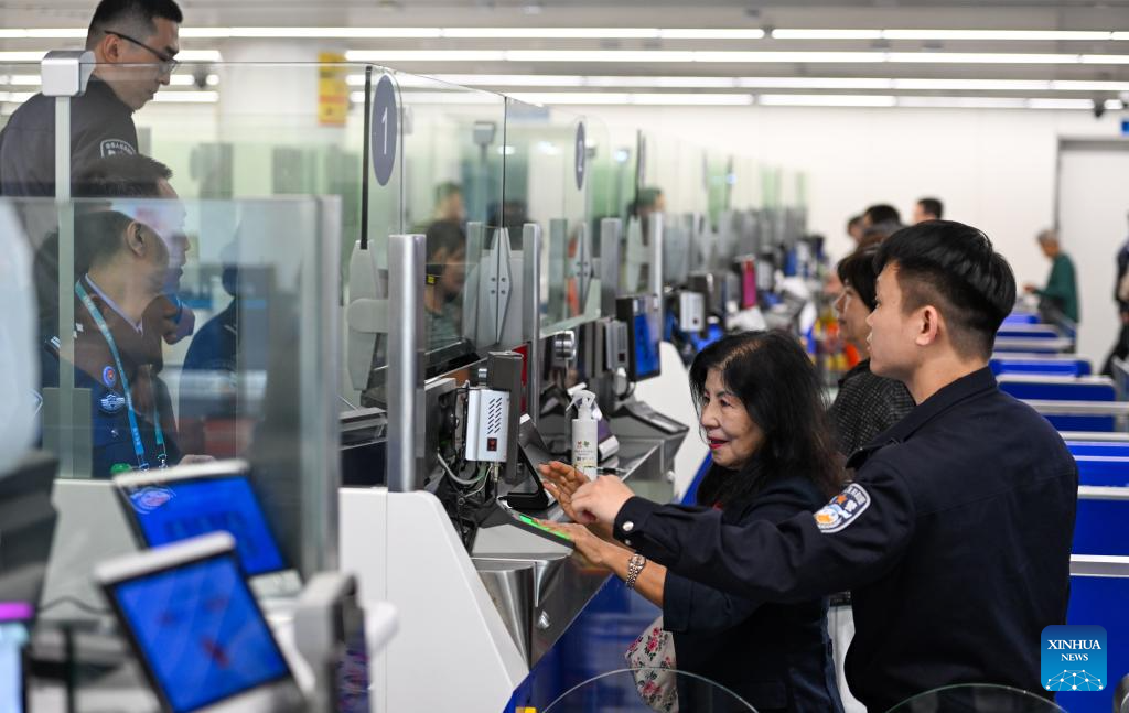An inbound passenger goes through border inspection procedures at Haikou Meilan International Airport in Haikou, south China's Hainan province, Jan. 17, 2026. One month into the island-wide special customs operations, Hainan Free Trade Port (FTP) in south China has made initial achievements in passenger convenience.
