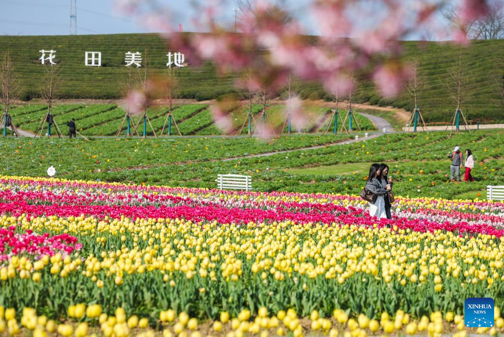 Tourists view tulips at a scenic area in Jinhua city, Zhejiang province, March 10, 2026. [Photo/Xinhua]