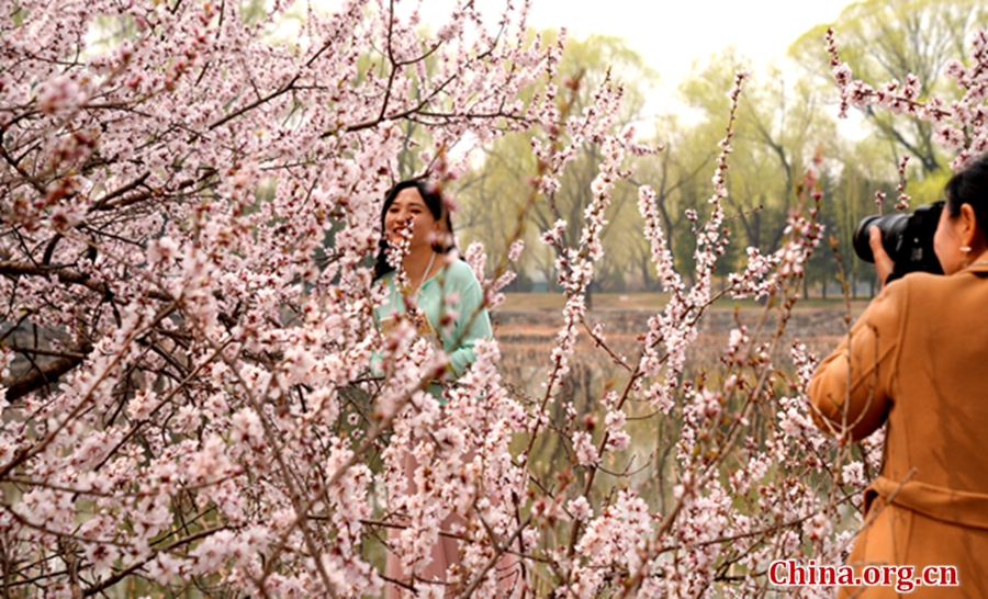 Visitors take photos among peach blossoms at the Summer Palace in Beijing, March 24, 2026. [Photo by Xu Xiaoxuan/China.org.cn]