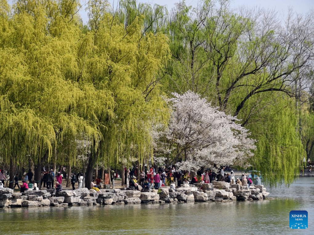 Tourists visit Yuyuantan Park in Beijing, capital of China, April 1, 2026. Spring flowers are blooming across the country, attracting people to enjoy outings and flower viewing. [Photo/Xinhua]