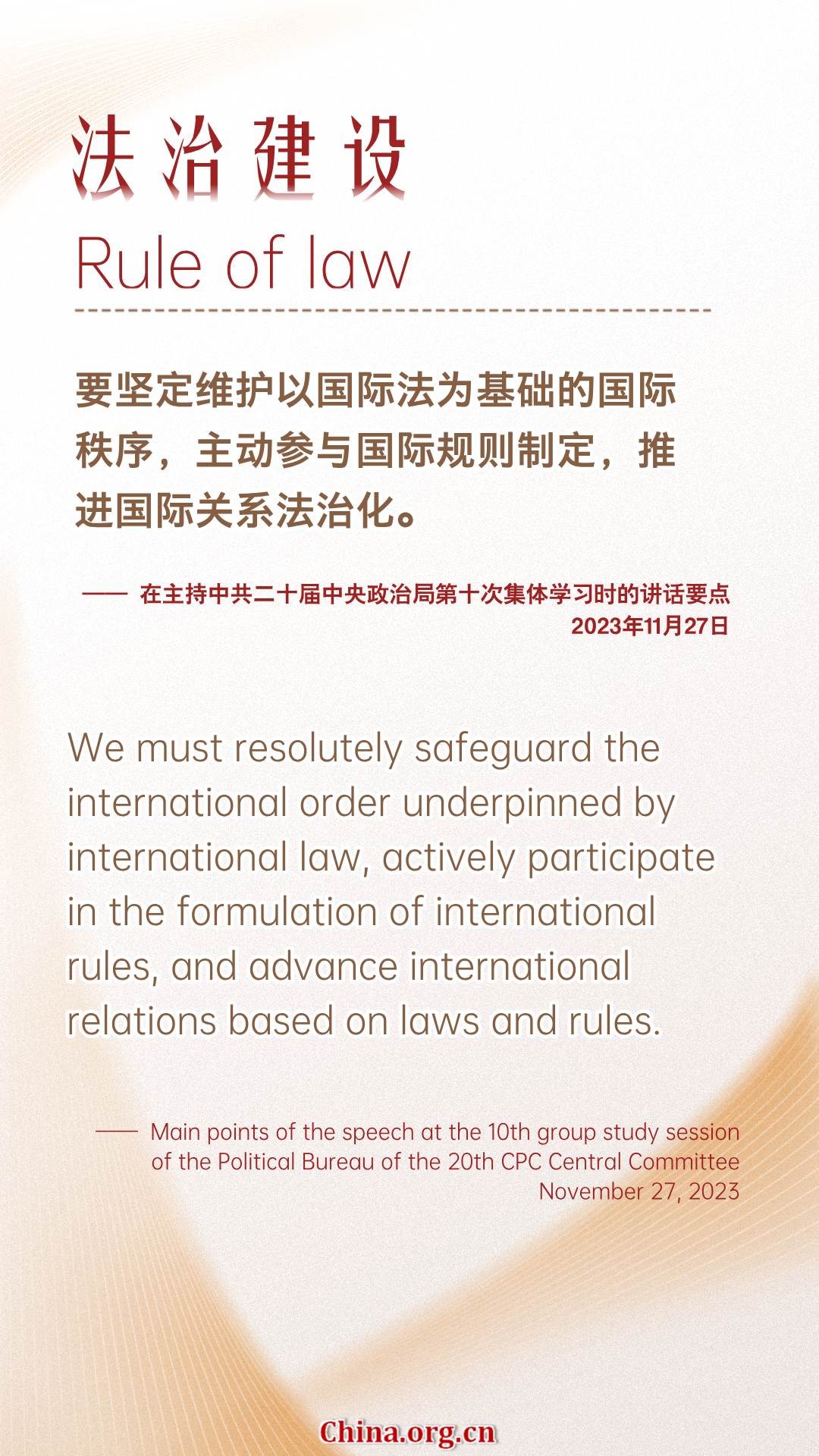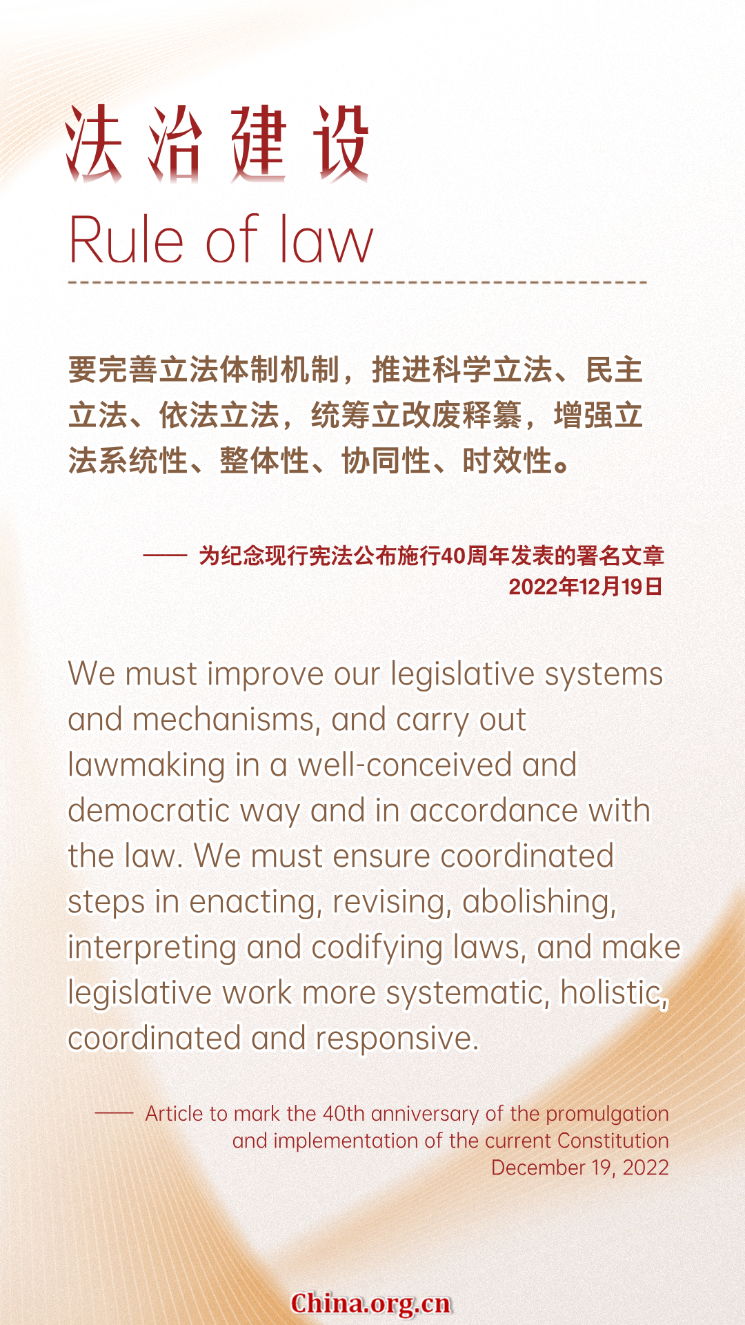 Editor's note: The fifth volume of "Xi Jinping: The Governance of China" was released in July, 2025. China.org.cn has curated Xi's remarks from the book according to specific topics on China's development and governance. Here is a selection on the rule of law.