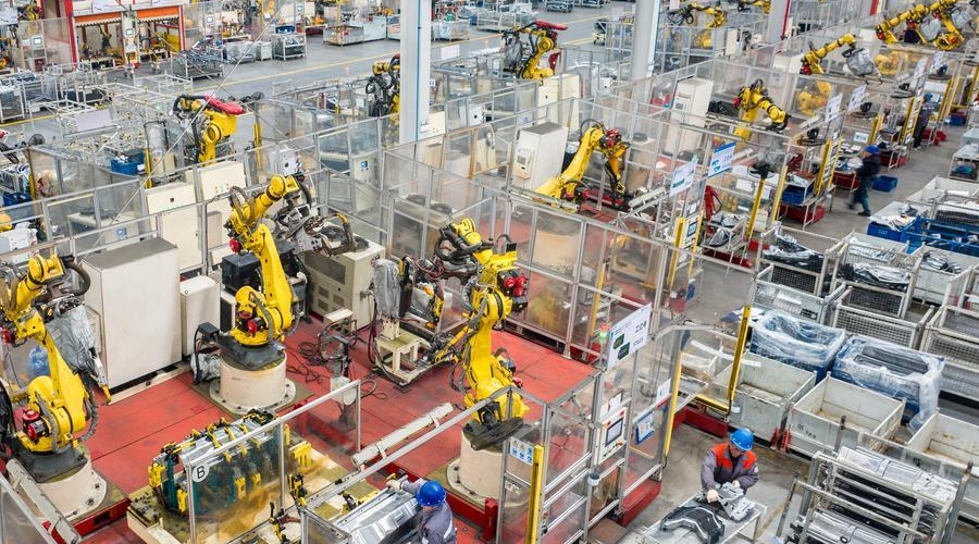 Technicians operate robotic arms to process components for new energy vehicles at a company in Changxing Economic and Technological Development Zone of Huzhou City, east China's Zhejiang Province, on Feb. 5, 2025. [Photo/Xinhua]